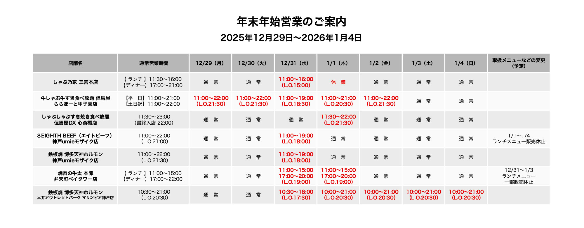 【2025-26年末年始 営業時間のご案内】