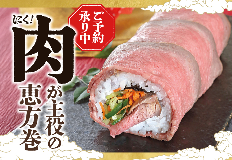 【精肉卸問屋直営店謹製『黒毛和牛ローストビーフ恵方巻』 ご予約受付中!】